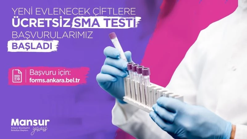 Ankara Büyükşehir Belediyesi, yeni evlenecek çiftlere sağlanacak ücretsiz Spinal Musküler Atrofi (SMA) testi desteği için başvuru sürecinin başladığını duyurdu.