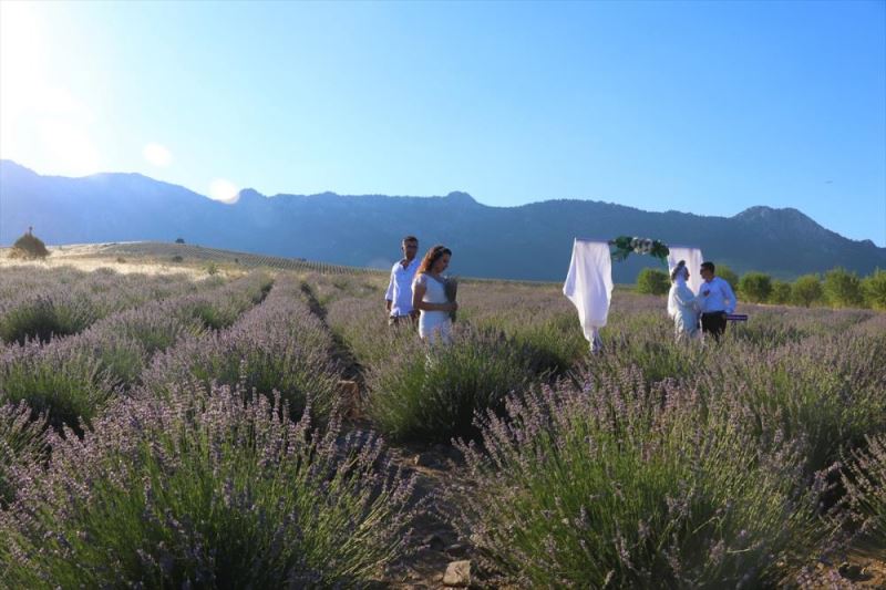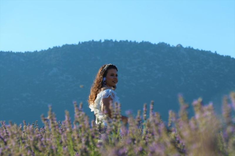 Burada, evlilik anilarina unutulmaz fotograf kareleri ekleyen çiftler, lavantanin insani dinlendiren kokusunu soluyup, huzur veren görselligini seyretme imkani da buluyor.