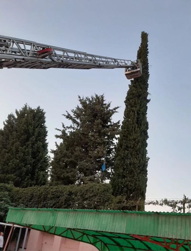 Adana’da uçurtmasının takıldığı 40 metrelik çam ağacına tırmanıp mahsur kalan çocuk, itfaiye ekipleri tarafından kurtarıldı.
