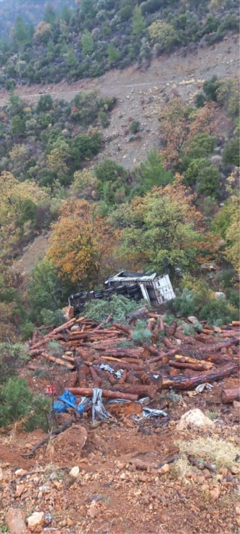 Yaşar Demir idaresindeki 33 P 0395 plakalı tomruk yüklü kamyon, Pembecik Mahallesi'nde sürücüsünün direksiyon hakimiyetini kaybetmesi neticesi uçuruma devrildi.