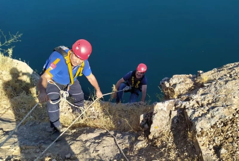 Adıyaman’da, uçurum kenarında mahsur kalan keçi, AFAD ekiplerinin çalışmaları sonucunda kurtarıldı.