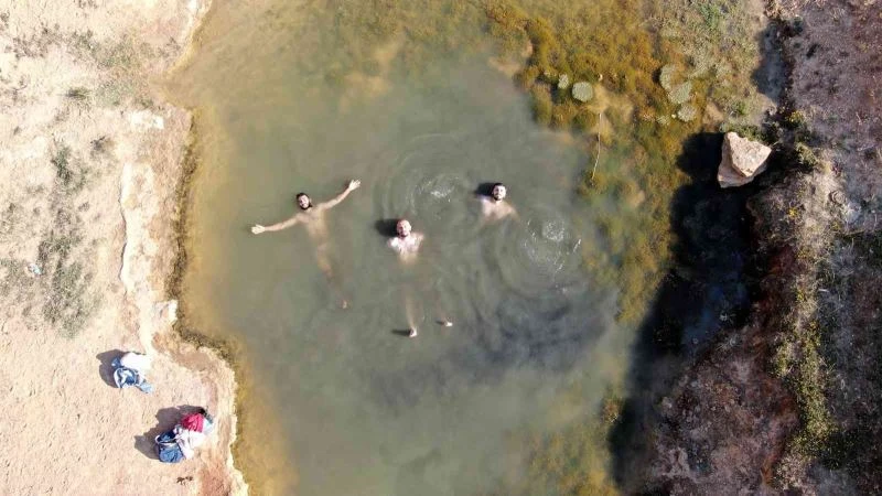 Sivas’ın Yıldızeli İlçesine bağlı Bakırcıoğlu köyünde bulunan ve köylüler tarafından “Uyuz çermik” adı verilen uçurumun kenarındaki göl şifa dağıtıyor.