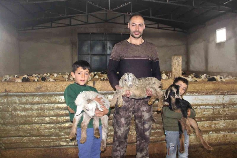 Elazığ’da tek yavru bekledikleri keçi üçüz doğurunca sürü sahibi ve ailesi büyük sevinç yaşadı. Sevimli oğlaklar aynı zamanda çocukların da maskotu haline geldi.