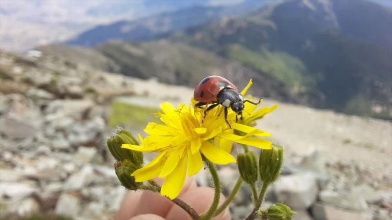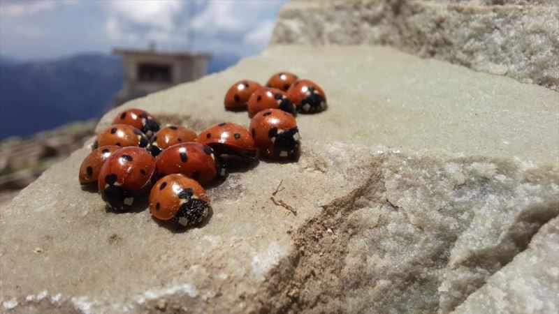 Zirvede bulunan ugur böcegi türü, halk arasinda "gelin böcegi" veya "uç uç böcegi" olarak da aniliyor.