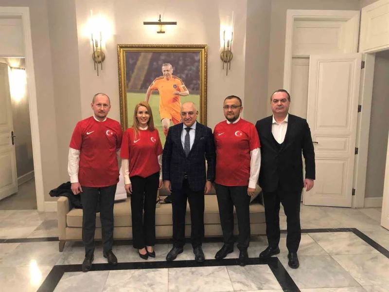 Ukrayna Büyükelçisi Vasly Bodnar, eşi Kateryna Bodnar ve Ukrayna İstanbul Başkonsolosu Roman Nedilsky ile birlikte Türkiye Futbol Federasyonu Başkanı Mehmet Büyükekşi’ye nezaket ve taziye ziyaretinde bulundu.