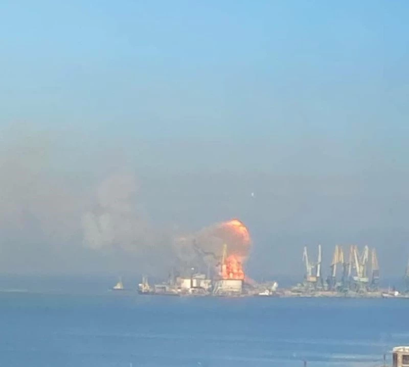 Ukrayna ordusu, Berdyansk şehrinde Rusya’nın kontrolündeki limanda bulunan Orsk çıkarma gemisini vurdu.