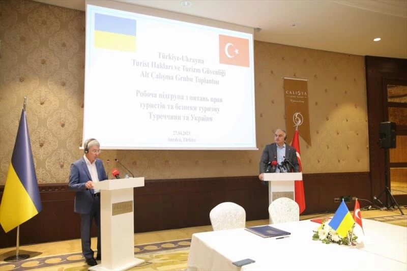 Ersoy ile Ukrayna Kültür ve Enformasyon Politikası Bakanı Oleksandr Tkachenko, Belek Turizm Merkezi'ndeki bir otelde düzenlenen "Ukrayna Turist Hakları ve Turizm Güvenliği Alt Çalışma Grubu Toplantısı" sonrası gazetecilerin sorularını yanıtladı.