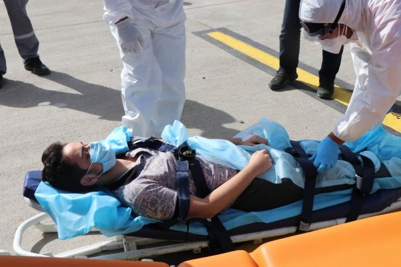Ukrayna’da düşerek belini kıran genç, Türkiye’ye uçak ambulans ile getirildi