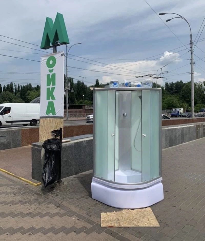 Ukrayna’da yaşanan sıcak havadan bunalan vatandaşlar, serinlemek için çareyi sokaklara seyyar duşa kabinler kurmakta buldu.