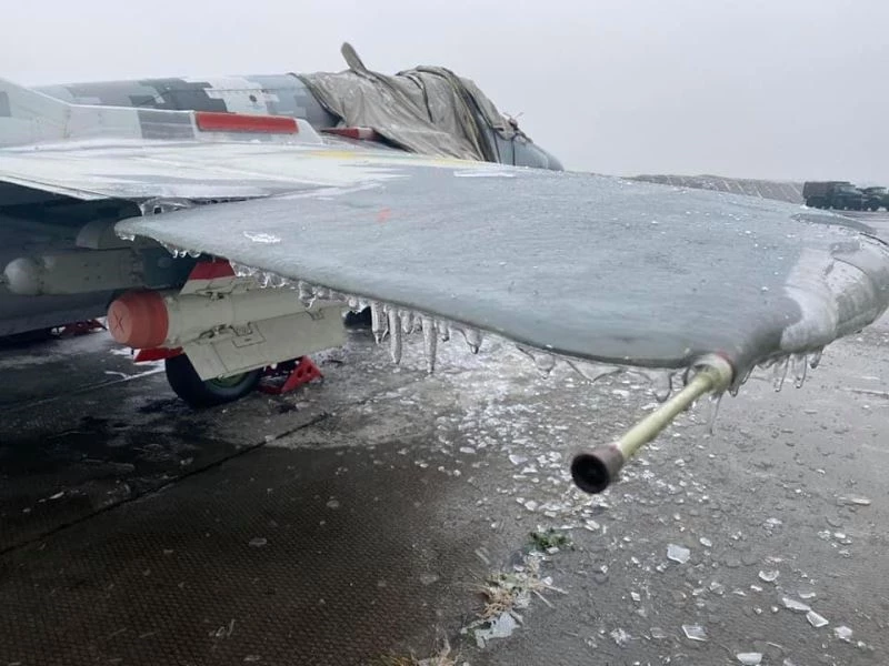 Ukrayna genelinde etkili olan aşırı soğuklar nedeniyle MİG 29 tipindeki savaş uçağını buz kapladı. Üzerinde yaklaşık 3 santimlik buz kalıbı oluşan uçak kullanılamadı.