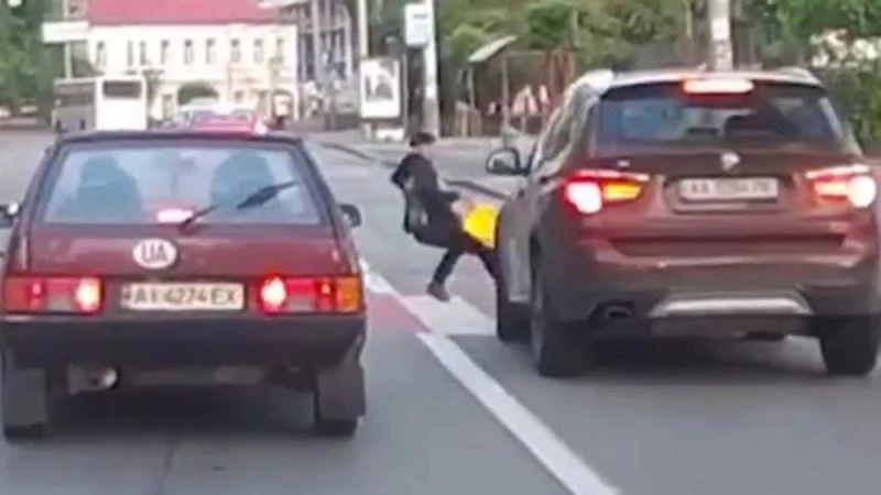 Ukrayna’nın başkenti Kiev’de, Jilyanskaya Caddesi üzerinde yaya geçidini kullanarak karşı yola geçmeye çalışan bir vatandaş, son anda gösterdiği refleks hareketiyle üzerine hızla gelen aracın altında kalmaktan kurtuldu. Korku dolu anlar, yoldan geçen diğer sürücülerin araç kameralarına takıldı. Yayaya çarpmamak için direksiyonu son anda başka yöne kıran sürücü, kaldırıma çıktıktan sonra olay yerinden hızla uzaklaştı. Yaya ise olay anında gösterdiği refleksle şans eseri hayatta kaldı.