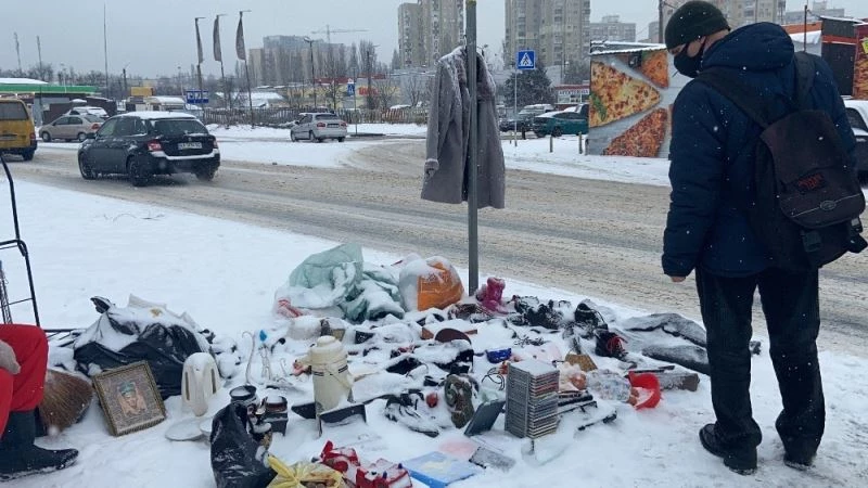 Kiev’den kameralara yansıyan görüntülerde, bazı vatandaşların kötü hava şartlarına rağmen -3 derecede karlar altında çalıştığı görüldü.