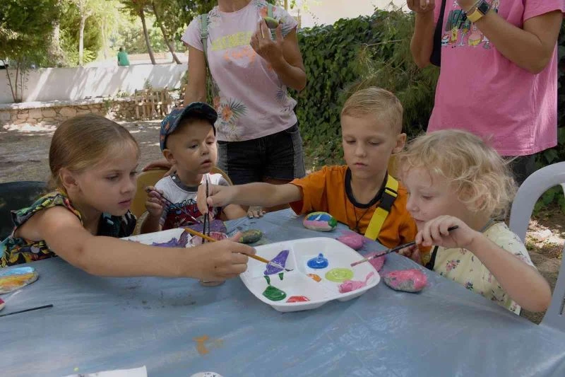 Aydın’ın Kuşadası ilçesinde, Rusya’nın Ukrayna’ya düzenlediği askeri harekat nedeniyle geçtiğimiz Mart ayında ilçeye sığınan Ukraynalı savaş mağduru çocuklar için taş boyama etkinliği düzenlendi. Rus ve Türk ailelerin de katıldığı etkinlikte çocuklar taşların üzerine resimler çizdi.