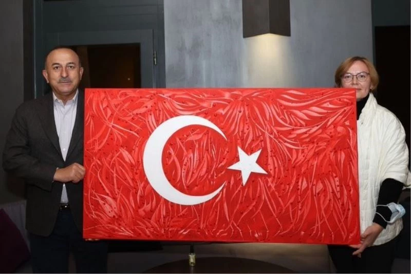 Ukraynalı ressam Olena Teliatnyk, bir yarışmada dereceye giren Türk bayrağı temalı resmini Dışişleri Bakanı Mevlüt Çavuşoğlu’na hediye etti.