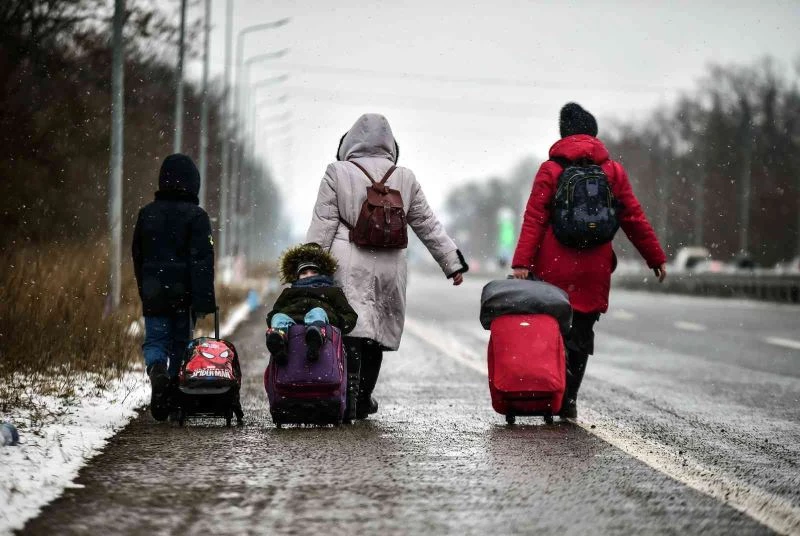 Rusya’nın devam eden Ukrayna saldırılarında Romanya sınırında araç kuyrukları oluşurken, araçları olmayan Ukraynalılar sınırı yürüyerek geçmeye çalışıyor.