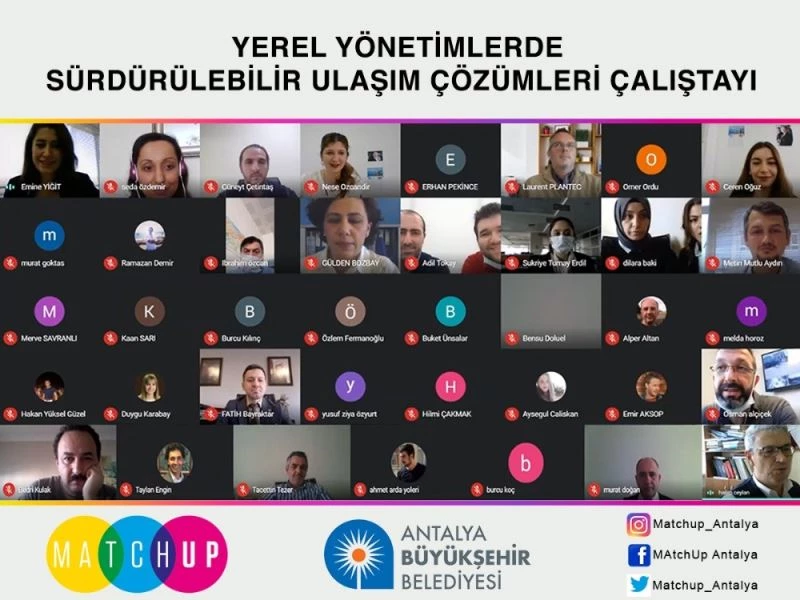 Antalya Büyükşehir Belediyesi, MAtchUP projesi kapsamında sunulan kent içi ulaşım sorunlarına kalıcı ve sürdürülebilir çözümlerin yaygınlaştırılması için “Yerel Yönetimlerde Sürdürülebilir Ulaşım Çözümleri Çalıştayı”nı çevrimiçi olarak gerçekleştirdi.