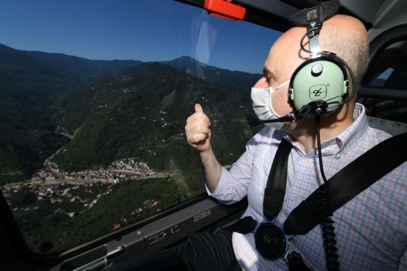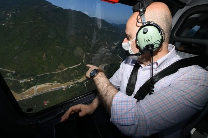 Ulaştırma Bakanı Karaismailoğlu selden etkilenen bölgeleri havadan inceledi