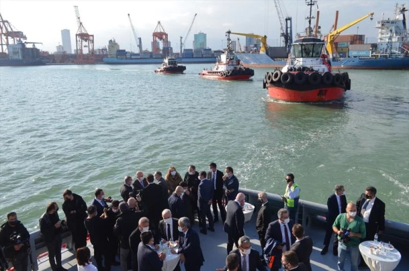 Bakan Karaismailoğlu, Mersin Uluslararası Limanı (MIP) Doğu Akdeniz Terminali 2. Fazı Genişleme Projesi temel atma töreninin ardından, Vali Ali İhsan Su, MIP yetkilileri ve diğer ilgililerle limandan bindiği römorkörle denize açıldı.