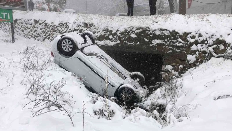 Uludağ yolunda kayan araç takla attı: 3 kişi yaralandı