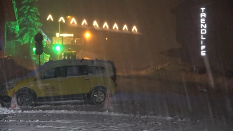 Tatilcilerin dışarda park ettikleri araçlar kar altında kalırken, kayak pistlerinin de kısa sürede açılmasının beklendiği öğrenildi.