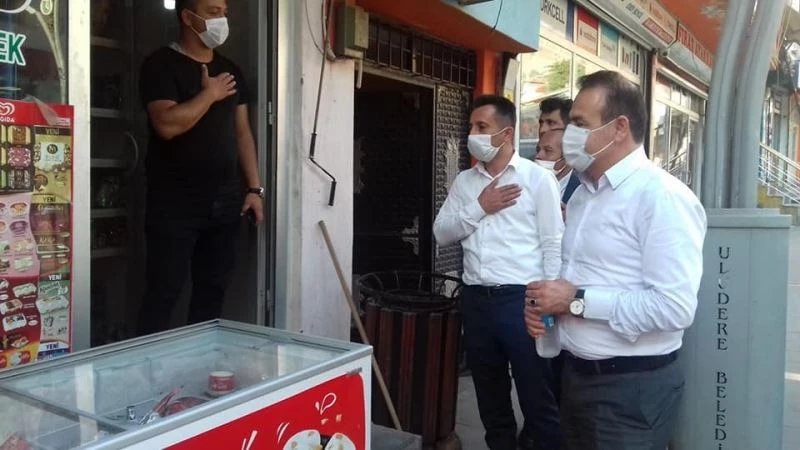 Uludere İlçe Belediye Başkanı Sait Ürek ve Ak Parti İlçe Başkanı Fikret Demir esnaf ziyareti gerçekleştirerek maske dağıttı. Koronavirüs salgınına karşı vatandaş ve esnafı bilgilendiren Başkan Ürek, belediye olarak virüse karşı tüm tedbirleri aldıklarını söyledi. Ürek, "Koronavirüs salgınına karşı belediye olarak sürekli temizlik çalışmaları yapıyoruz. Ve sürekli ilaçlama dezenfekte yapıyoruz her yeri. Maske kullanımına karşı herkesi bilgilendiriyoruz. Bu günde esnafımızı ziyaret edip gerekli hassasiyeti gösterdikleri için teşekkür ettik. Duyarlı esnafımız maskesiz kimseyi içeri almıyor" dedi.