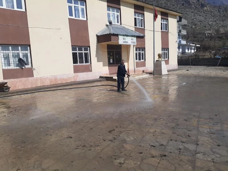 Şırnak’ın Uludere ilçesinde okullar, itfaiye ekipleri tarafından yıkanıp temiz hale getirildi.