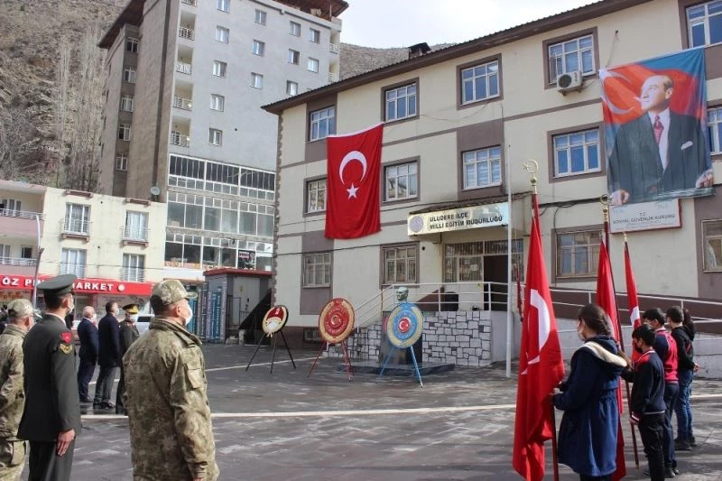 15 Temmuz Meydanında bulunan Atatürk anıtına çelenk sunumu ile başlayan tören, saygı duruşu ve İstiklal Marşının okunması ile devam etti. Tören Uludere Çok Programlı Anadolu Lisesi salonunda icra edilen 18 Mart Çanakkale Zaferi ve Şehitleri Anma Programıyla devam etti.