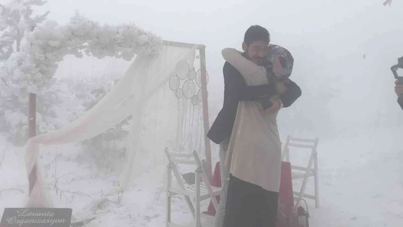 Balıkesir’in Sındırgı ilçesinde yaşayan Şuayip Dayı, kız arkadaşı Kezban Nur Dedebaş’a Ulus Dağı zirvesinde karlar üstünde evlilik teklifi etti.