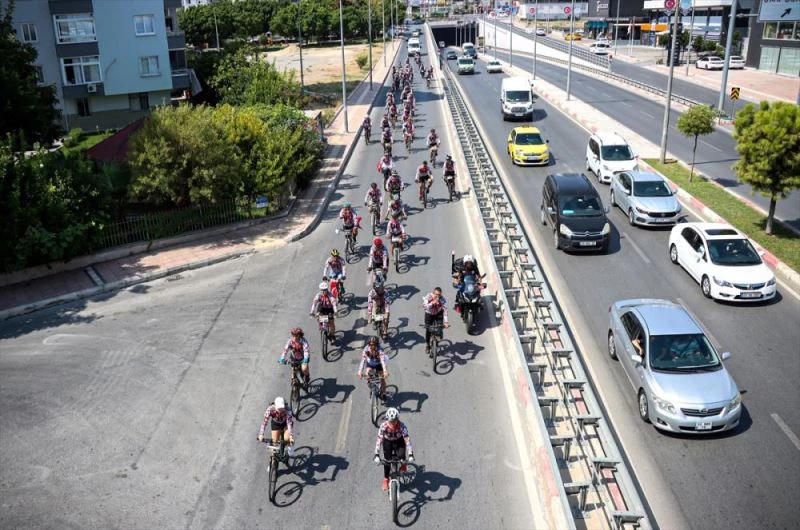 Mezitli Belediyesi önünde mola veren bisikletçiler, burada buluştukları Belediye Başkanı Neşet Tarhan'a destekleri için teşekkür etti.