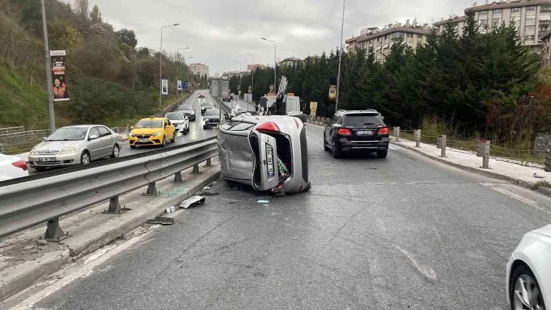 Olay saat 08.45 sıralarında Ulus Akmerkez Yolu’nda meydana geldi. Edinilen bilgiye göre 34 CVG 79 plakalı otomobiliyle yolda seyir halinde olan sürücü Ahmet Eren direksiyon hakimiyetini kaybederek bariyerlere çarptı. Çarpmanın etkisi ile araç birkaç kez takla atarak yan yattı. Takla atan aracının içerisinden kendi imkanları ile kurtulmayı başaran sürücü Ahmet Eren, kazayı burnu bile kanamadan atlattı. İhbar üzerine olay yerine itfaiye, polis ve sağlık ekibi sevk edildi. Kısa sürede olay yerine gelen itfaiye ekipleri araçta inceleme yaparak çevrede önlem aldı. Kazanın şokunu bir süre atlatamayan sürücü takla atıp parçalanan aracının başından ayrılmadı. Çalışmaların ardından araç çekici yardımıyla kaldırılarak emniyet otoparkına götürüldü. Polis ekipleri ise kazayla ilgili inceleme yaparak tutanak tuttu.