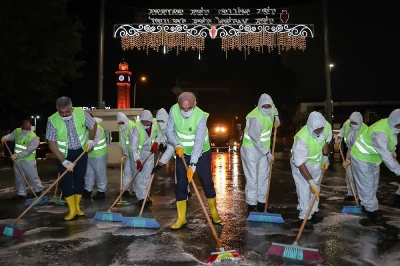 Megakent İstanbul’un en kalabalık ilçelerinden birisi olan Ümraniye’de gece saatlerinde hummalı bir çalışma vardı. Salgından korunmak için en önemli husus olan hijyene dikkat eden Ümraniye Belediyesi ekipleri caddeleri deterjanlı suyla yıkadı ve dezenfektan işlemi yaptı.