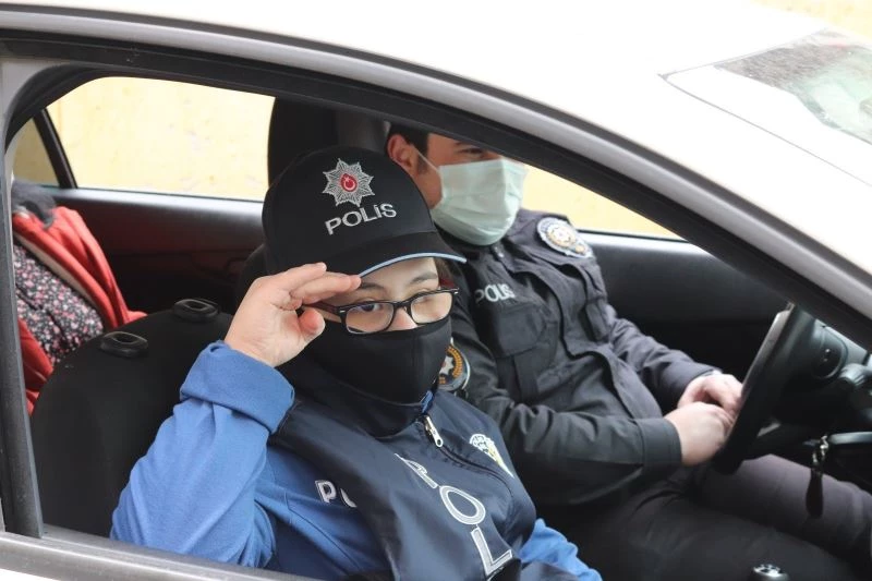 Ümraniye’de down sendromlu Hayriye Özen (20), evlerine giren hırsızın biriktirdikleri parayı çalması sonrası polislik hayali kurmaya başladı. Geçtiğimiz günlerde ise Dünya Down Sendromu Farkındalık Günü münasebetiyle Özen ailesinin kapısını çalan ve Hayriye ile sohbet eden Başkan İsmet Yıldırım, Hayriye’nin polislik hayalini duyunca çalışmalara başladı. Başkan Yıldırım, Hayriye’yi de yanına alarak Ümraniye İlçe Emniyet Müdürlüğü’ne ziyarette bulundu. Emniyete gelen Başkan Yıldırım ve Hayriye, Ümraniye İlçe Emniyet Müdürü Ali Tuna Coşkun ile uzun uzun sohbet etti. Sohbetin ardından hediyesini Müdür Çoşkun’dan alan Hayriye, üniformasını da giyerek devriye atmak üzere ekip otosuna geçti.