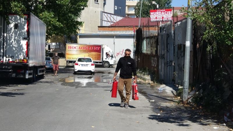 Ümraniye’de hurdalık alanda yangın çıktı. Yangına vatandaşlar yangın tüpü ile müdahale etti.
