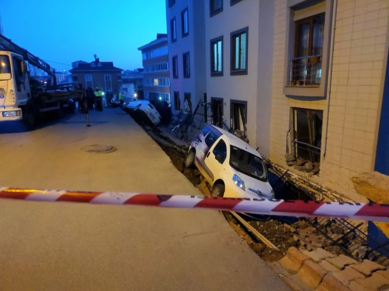 Ümraniye’de istinat duvarı çöktü, 4 araç yuvarlandı