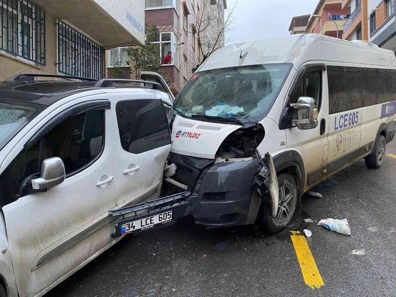 Ümraniye’de yağış nedeniyle kayganlaşan yolda kontrolden çıkan öğrenci servisi park halindeki 4 araca çarptı. Kazada 3 öğrenci hafif şekilde yaralandı.