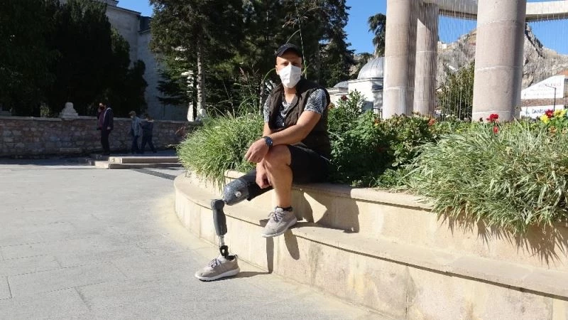 Tokat’ta yumuşak doku kanseri nedeni ile üniversite eğitimi yarım kalan, sağ bacağı diz altından kesilen Mikail Yıldırım, yaşama umudunu yitirmeyerek protez bacakla hayata tutundu.