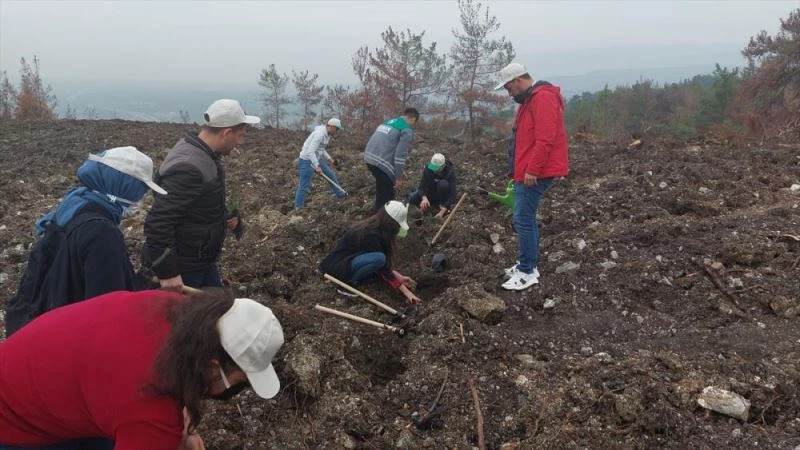Üniversite öğrencileri yanan ormanlık alanda fidan dikti