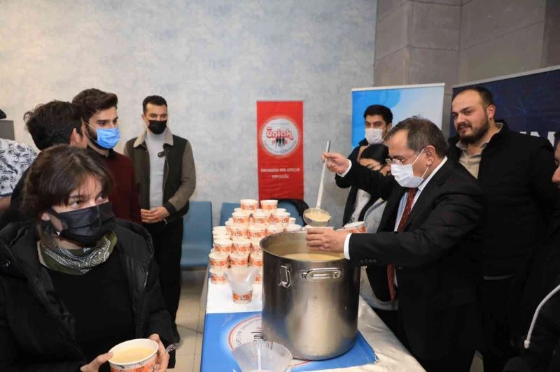 Üniversite öğrencilerine sınav haftasında sıcak çorba ikramı