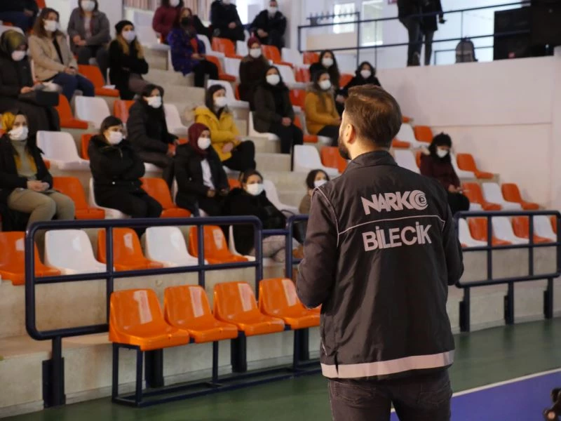 Üniversitenin spor salonunda düzenlenen "En İyi Narkotik Polisi: Anne” konulu sunum polis memurları Recep Sağlam ve Can Ali Maba tarafından verilirken, Bilecik Şeyh Edebali Üniversitesinde görev yapan akademik ve idari çok sayıda kadın personel katıldı. Uyuşturucu madde bağımlılığının önlenebilmesi, konu hakkında toplumsal farkındalık oluşturulması ve Bilecik’te uyuşturucu ile mücadele konusunda duyarlılığın artırılması amacıyla düzenlenen programda, “Bağımlı Olma” projesi kapsamında planlanan faaliyetler kurum personelinle paylaşıldı.