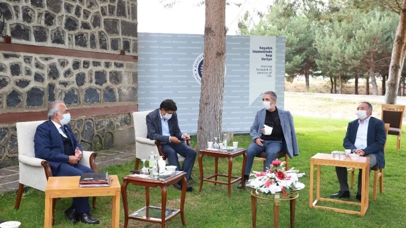 Konuklarını maske ve sosyal mesafe kullarına uygun olarak kampüs içerisinde yer alan Erzurum Evi bahçesinde ağırlayan Rektör Çomaklı, tebrik ziyaretine gelen Ağrı İbrahim Çeçen Üniversitesi Rektörü Prof. Dr. Abdulhalik Kababulut ve Kastamonu Üniversitesi eski Rektörü Prof. Dr. Seyit Aydın’ı misafir etti.