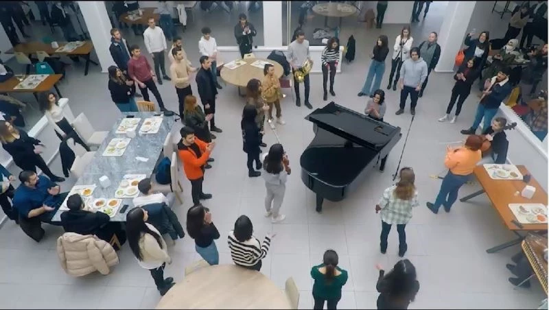 BUÜ Rektörlüğü, 18 Mart Çanakkale Zaferi ve Şehitleri Anma Günü öncesinde farklı bir çalışmaya imza attı. Eğitim Fakültesi Müzik Bölümü öğrencileri, Devlet Konservatuvarı akademisyenlerinin yeniden altyapı müziklerini hazırladığı Çanakkale Türküsü’nü öğrenci yemekhanesinde söyledi. Yüzlerce öğrencinin aynı anda yemek yediği salonda önce piyano sesi duyuldu. Hemen ardından keman ve farklı enstrümanlarıyla öğrenciler salona geldi. Son olarak türküyü okumak için öğrenciler ortaya çıktı. Yemek yiyen öğrenciler ise bu anları şaşkınlıkla izledi. Videoda kayıt yapmak için telefonlarını çıkaran ve türküye eşlik eden öğrenciler de dikkat çekti.