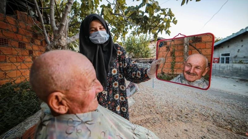 Reyhan Yüksel, AA muhabirine, Kovid-19 süresince okullarin açilmamasini degerlendirerek yaslari ilerlemis olan babaannesi ve dedesinin yanina geldigini söyledi. Kuzeninin berber oldugunu ve makineyle saç ile sakal kesmeyi ondan ögrendigini belirten Yüksel, "Köydeki yaslilarin salgindan etkilenmemek için ilçe merkezine gitmediklerini ve bu nedenle saç sakal tirasina ihtiyaç duyduklarini fark ettim. Bu sorunlarini çözmek için temin ettigim makineyle tiras etmeye basladim. Ilk basta biraz tedirgin oldular ama daha sonra alistilar." diye konustu.