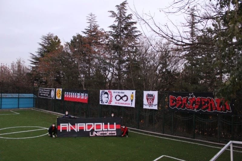 Kaan Öztürk Sahası’nda pankart çalışması yapan Üniversiteli Eskişehirsporlular’ın Anadolu Üniversitesi Temsilciliği üyeleri, Kaan Öztürk’ü andı. Aynı zamanda ilkokul çağındaki çocuklara Eskişehirspor sevgisi aşılamayı hedefleyen taraftar grubu sahayı pankartlarla donattı.