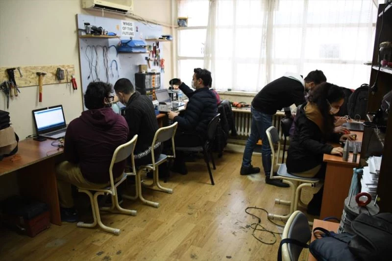 Roketle, TEKNOFEST'e katılıp şampiyon olmayı hedefleyen genç mühendis adayları, çalışmalarını üniversite bünyesindeki atölyelerinde yeni tip koronavirüs (Kovid-19) tedbirleri çerçevesinde sürdürüyor.