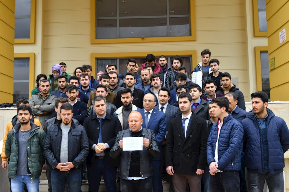 Üniversitemiz 15 Temmuz Şehitler Amfisi önünde toplanan Öğrenci Kulüpleri Birliği adına açıklamayı Tarih Topluluğu Başkanı Üniversitemiz Tarih Bölümü 2.sınıf öğrencisi Yasin Kürkçü okudu.