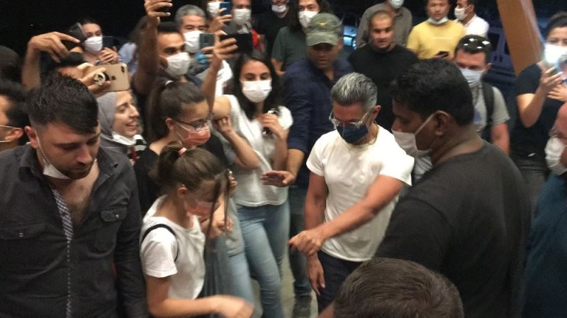 Ünlü aktör kaldığı otelin önüne gelen hayranlarıyla buluşarak fotoğraf çektirdi.