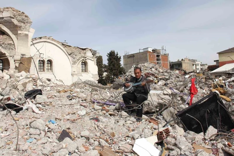 Enkazda eserlerini ve bilgisayarını arayan ünlü bestekar Aziz Çelik, enkazda cümbüşü ile ‘Oy aman aman burası Adıyaman’ türküsünü seslendirdi.