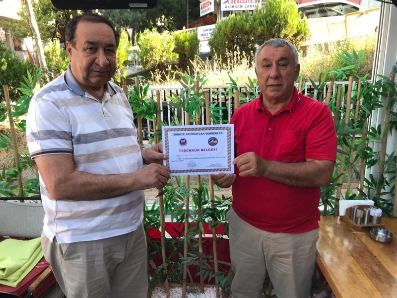 Türkiye Azerbaycan Dostluk Dernekleri Federasyonu Genel Başkan Yardımcısı ve Iğdır Azerbaycan Evi Derneği Başkanı Serdar Ünsal, Türkiye Azerbaycan kardeşliğine destek veren bürokraside uzun yıllar İl Müdürü, Daire Başkanı ve Genel Müdür Yardımcılığı görevlerinden sonra en son Sağlık Bakanlığı Bakanlık Müşaviri olarak emekli olan Türkiye Anıtlar Derneği yönetim kurulu üyesi Iğdırlı Orhan Nesip Kesemen’e teşekkür belgesi verdi.