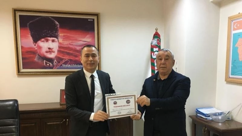 Türkiye Azerbaycan Dostluk Dernekleri Federasyonu Genel Başkan Yardımcısı ve Iğdır Azerbaycan Evi Derneği Başkanı Serdar Ünsal, Türkiye Azerbaycan kardeşliğine destek veren Kamu Hastaneleri Birlik Başkanı Taner Başaran’a teşekkür belgesi verdi.
