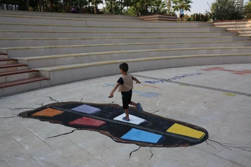 Şanlıurfa’da kaybolmaya yüz tutmuş oyunlar, parklarda çizilen üç boyutlu çizgilerle yeniden oynanmaya başlandı.